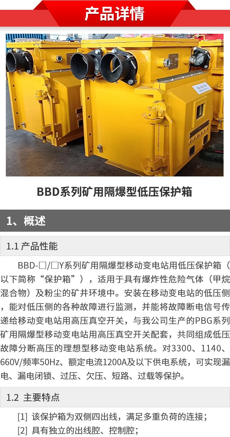 威達(dá)BBD系列礦用隔爆型移動變電站用低壓保護箱 運行平穩(wěn)低噪音